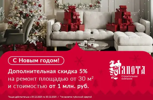Новый 2025 год все ближе, а значит, наступает долгожданная пора зимних чудес и исполнения заветных желаний. «Ляпота» готова воплотить в жизнь вашу мечту о новом ремонте и приготовила выгодное...